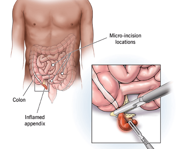 Precise laparoscopic appendectomy to treat appendicitis with small incisions and faster healing.